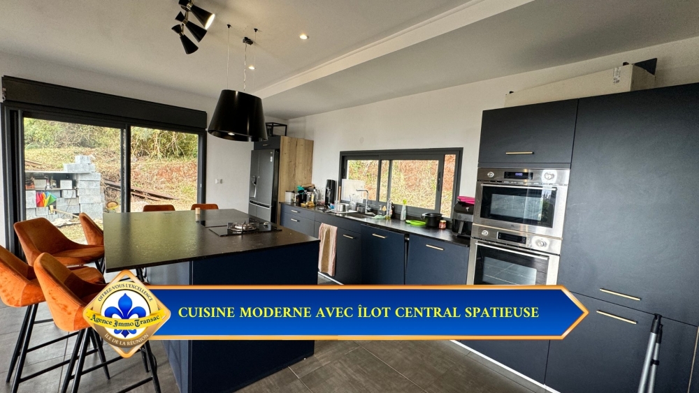 UNE CUISINE OUVERTE ET MODERNE : La cuisine de 15,8 m² est spacieuse, entièrement ouverte, équipée d'un grand îlot central fonctionnel, parfaite pour cuisiner et recevoir.