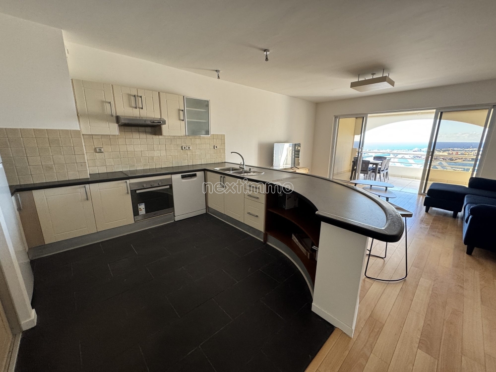 PAPEETE / RES. LES HORIZONS.... LOUE F2 BIS TRAVERSANT MEUBLÉ 65 M², TERRASSE, VUE RADE DE PAPEETE, PISCINE...