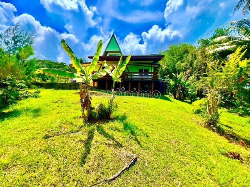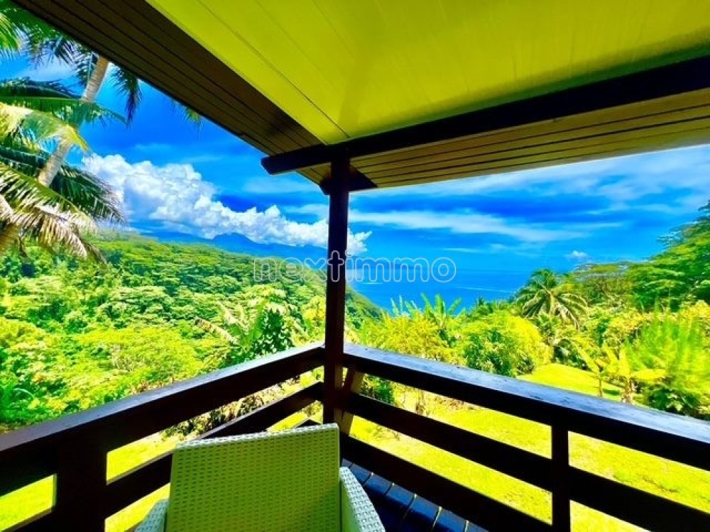 AFAAHITI / PLEINE HAUTEUR... LOUE CHALET F3 DE 90 M2, 2 CHAMBRES, TERRAIN ARBORE 4000 M2, CADRE VERDOYANT ET CALME, VUE 180° SUR MER...