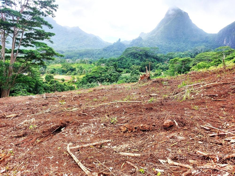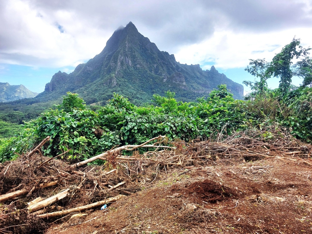 En pleine nature, accès avec SUV conseillé, offrant magnifique vue mer et Montagne (Juste en face du Mont ROTUI. Prévoir construction en autonomie énergétique (Eau et Électricité)