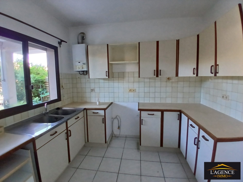 Appartement de type F3 en rez-de-jardin (environ 70 m² habitables), d'une terrasse couverte de 16 m² et d'un jardin privatif d'environ 170 m² avec accès direct depuis la rue.