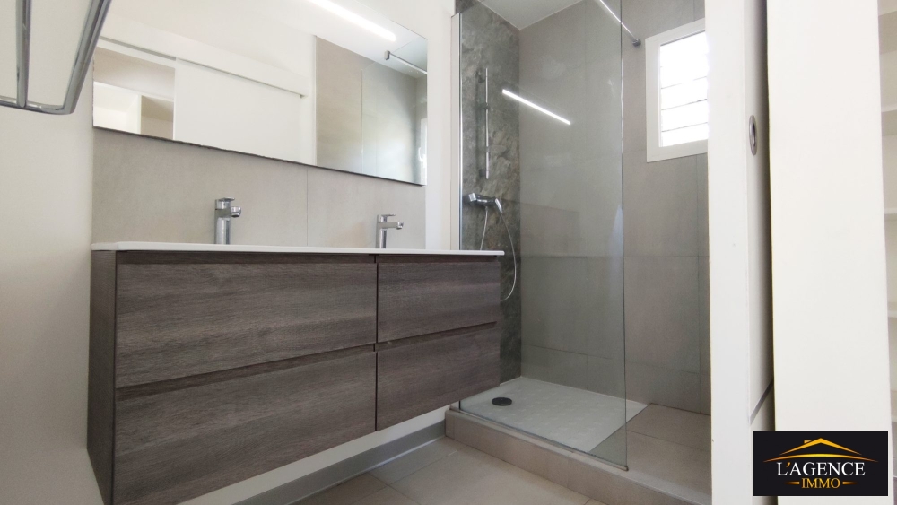 Spacieux appartement F3 de 75 m² bénéficiant d'un environnement calme et agréable. Il dispose d'un séjour avec cuisine équipée, de deux chambres climatisées dont une avec dressing et salle d'eau, d'une seconde salle d'eau et d'un WC.