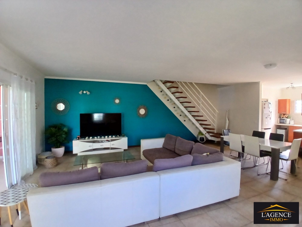 Venez découvrir cette villa F4 d'une superficie d'environ 140m² composée en RDC d'une entrée, d'un WC indépendant, d'une cuisine équipée et aménagée avec coin buanderie, d'un vaste et lumineux séjour donnant sur une terrasse couverte d'environ 20m².