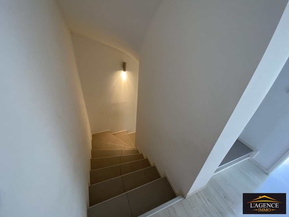 Cette villa jumelée de type F4 sur trois niveaux offre un cadre de vie idéal. Au rez-de-chaussée, vous trouverez une cuisine équipée ouverte sur le séjour, un salon lumineux, un WC indépendant ainsi qu'une buanderie avec pompe à chaleur.