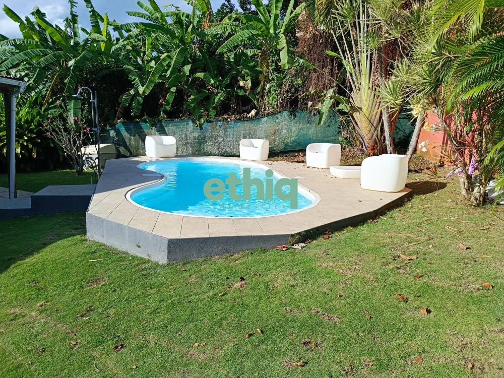 À vendre à Petit-Bourg, charmante maison 4 pièces de 99 m², édifiée sur un terrain de 997 m² avec piscine et terrasse.