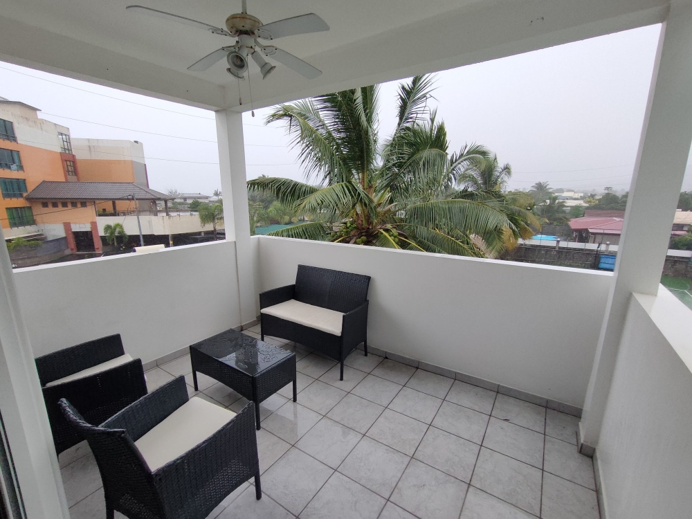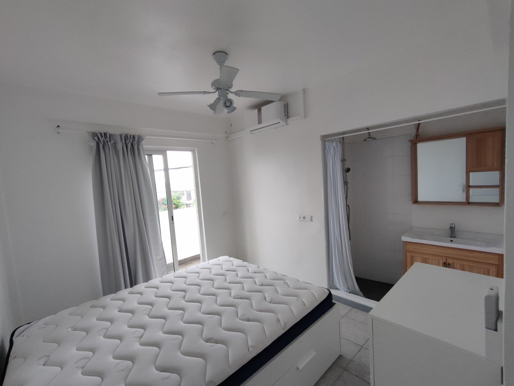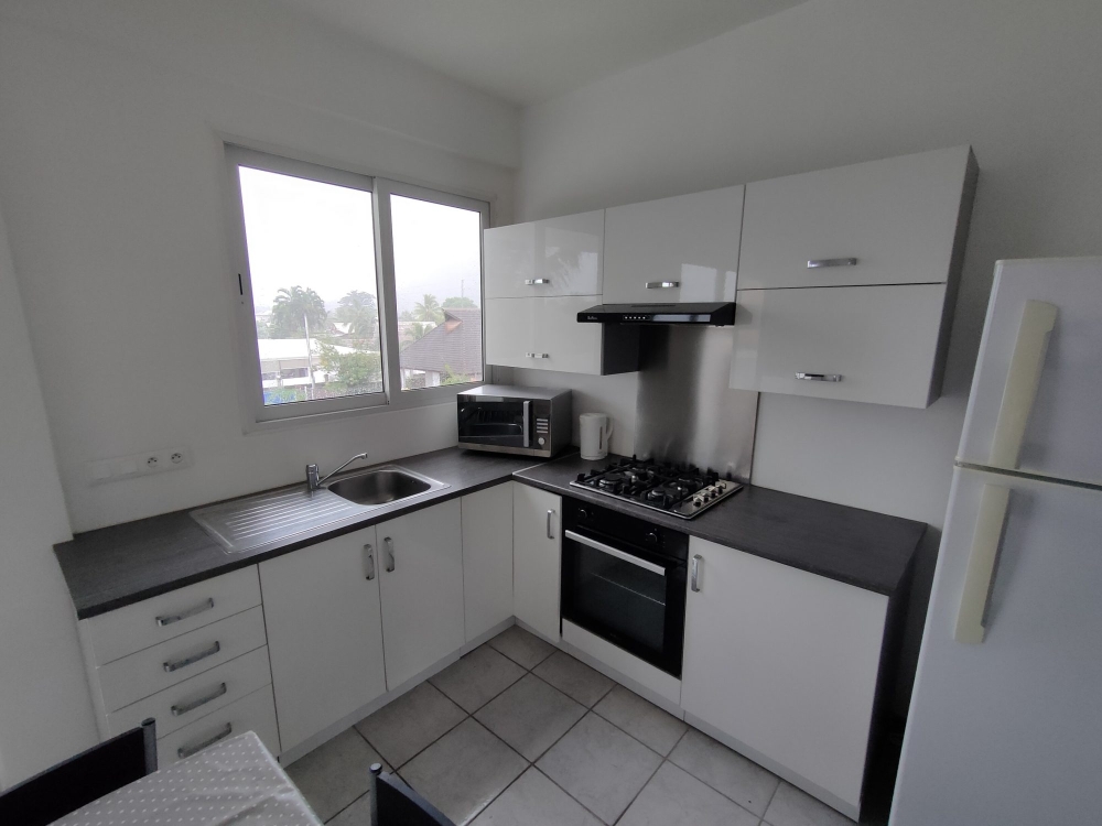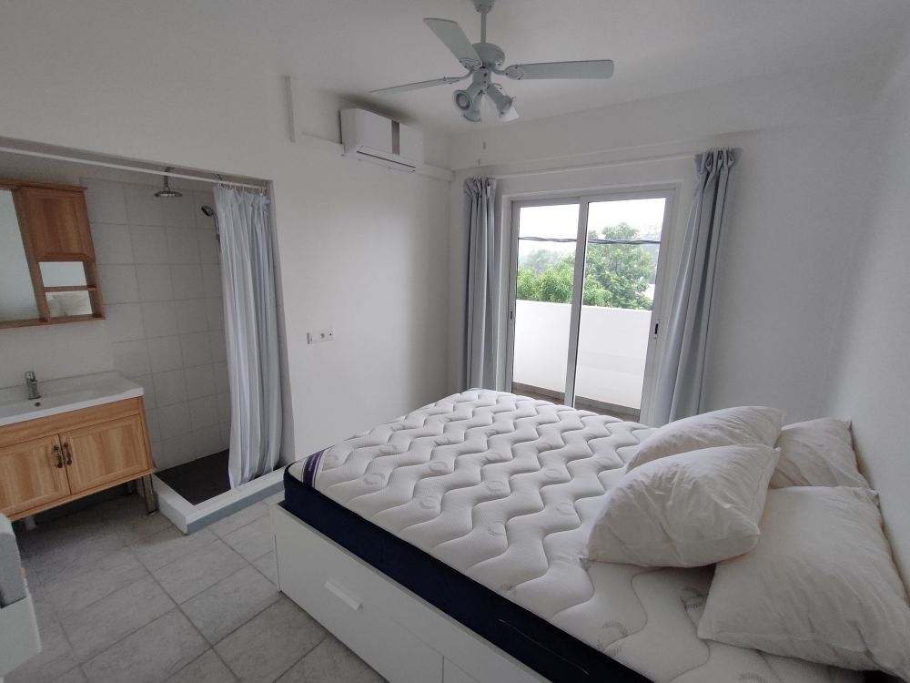 Cuisine américaine , salon , deux chambres à coucher climatisées ( douche et lavabo) ,terrasse , balcon.