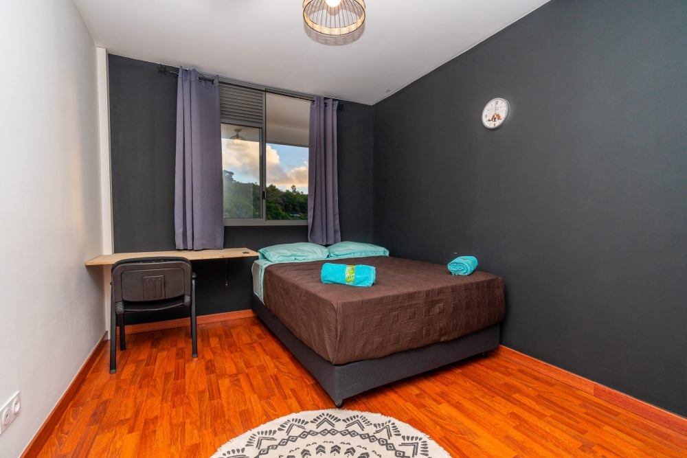 A vendre à Papeete - Appartement F3 meublé et équipé, résidence calme et sécurisée avec piscine et salle de sport.