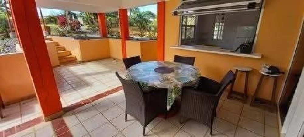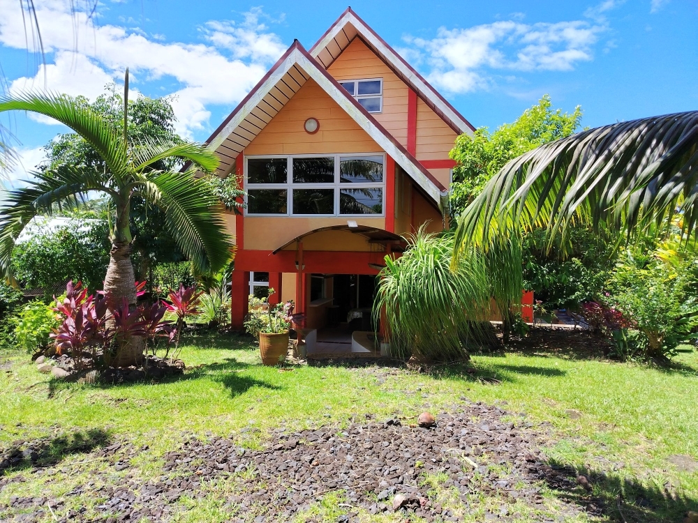 Située sur un terrain verdoyant et joliment arboré de ?.??? ?², cette charmante maison typiquement polynésienne, construite sur 2 niveaux, offre une ??????? ????????? ?? ??? ?².