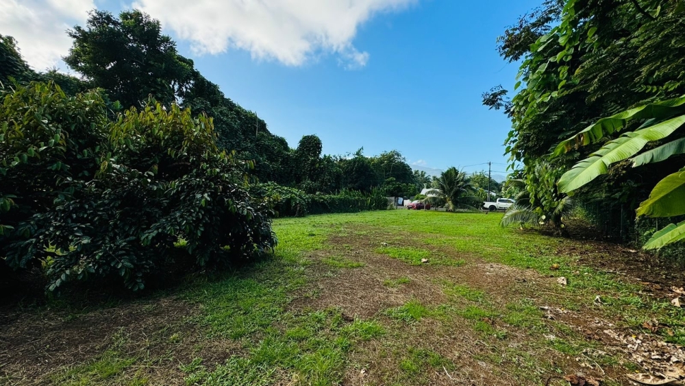 Vend proche du centre ville de Taravao et en bord de route, terrain plat et prêt a construire, clôture de 907 m2.