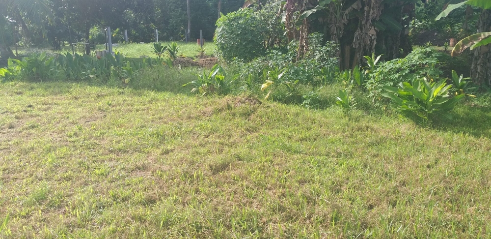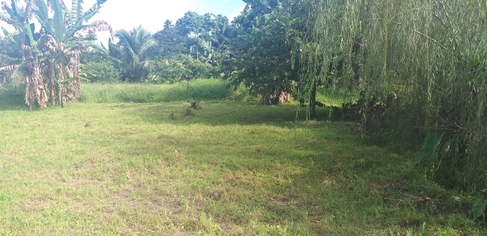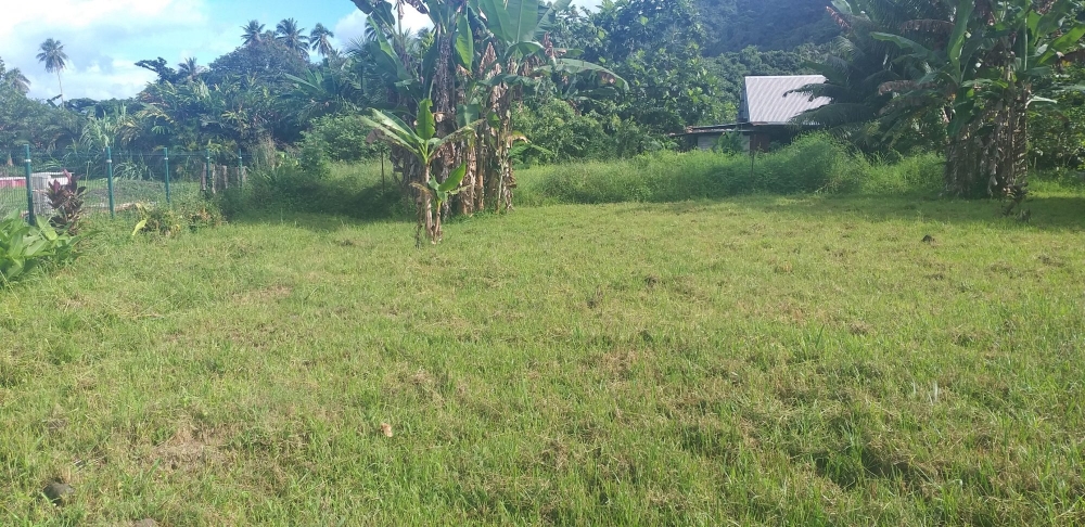 Vend a Teahupoo, beau terrain plat, arbore, quartier calme.