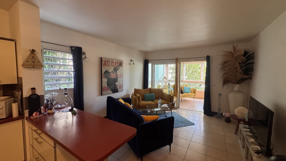 Au début de Ouémo, dans une Résidence de standing, Appartement comprenant : cuisine équipée et aménagée ouverte sur séjour, chambre climatisée avec placards , salle d'eau avec wc, buanderie, terrasse couverte de 20m².