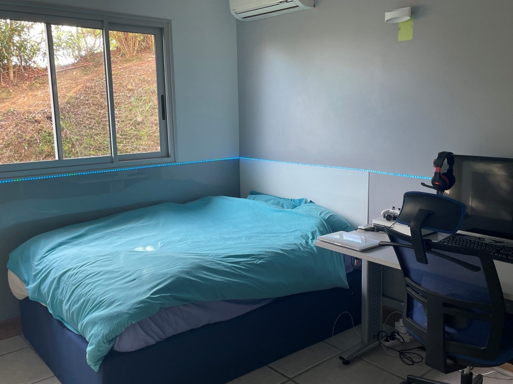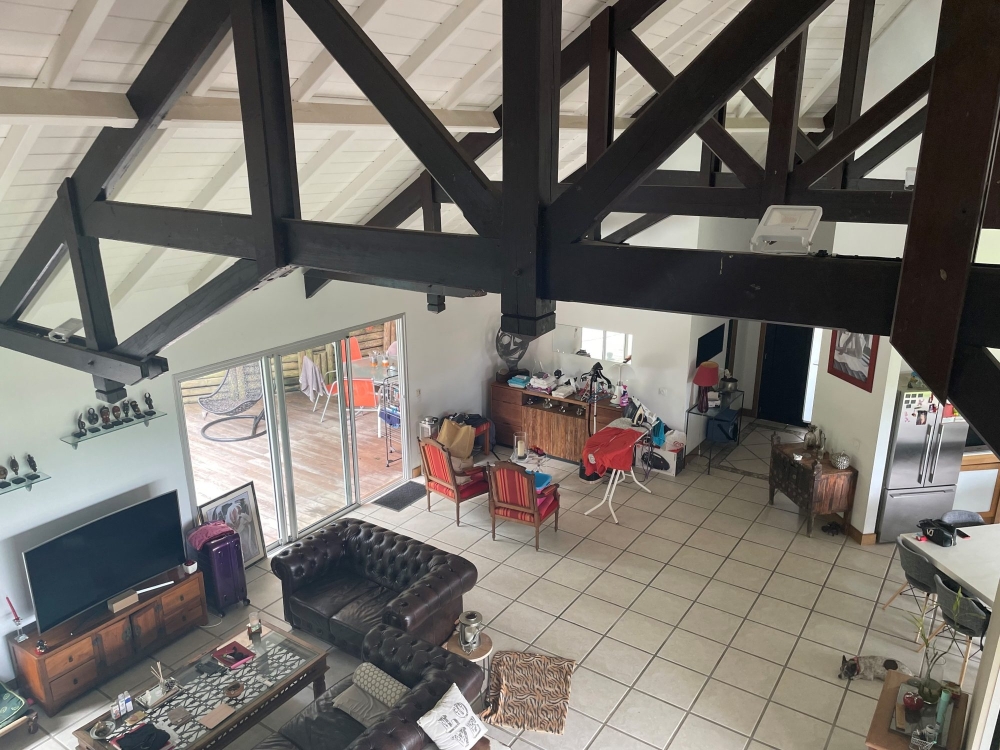 Très belle villa F5 d'environ 220 m² composée au RDC d'une cuisine équipée ouverte sur un grand salon avec une hauteur sous plafond de 7m20, trois chambres climatisées avec placards dont une suite parentale avec salle d'eau et Wc, une seconde salle d'eau avec WC, un autre WC séparé, une buanderie.