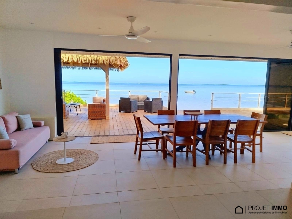 La terrasse suspendue sur le lagon invite à la relaxation et au bronzage.