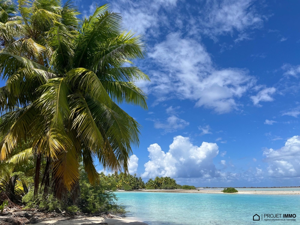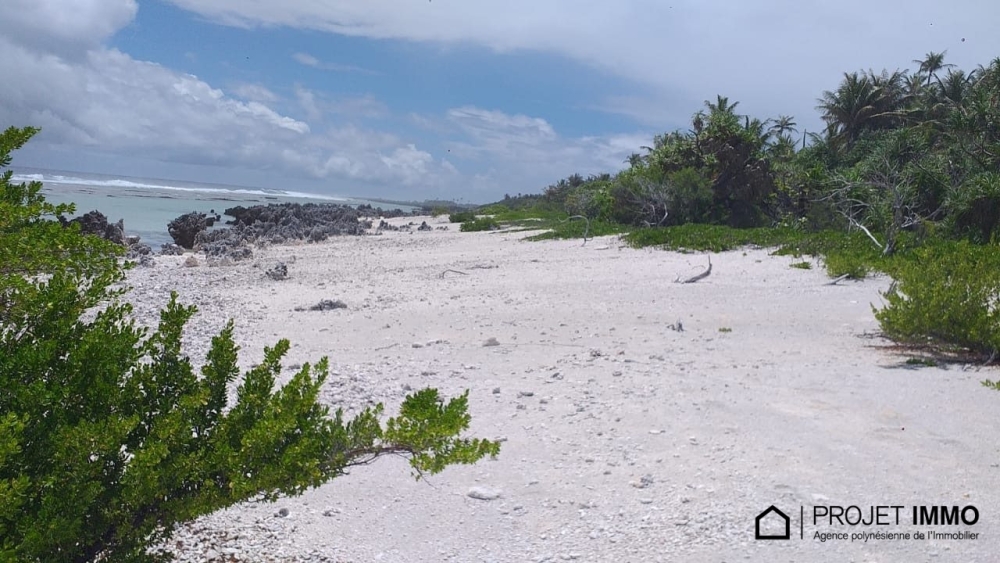 Sur une partie d'un Motu de RANGIROA, ce terrain d'une superficie de 49.280m², est bordé par la mer de 2 côtés, et par la terre des 2 autres côtés.