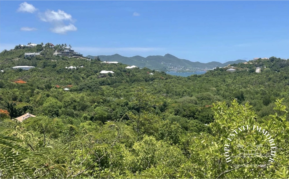 Le terrain est vendu avec un projet de villa contemporaine. La parcelle offre également une jolie vue sur le lagon de Simson Bay, atout rare pour séduire une clientèle haut de gamme.
