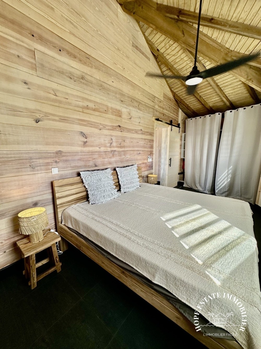 Au rez-de-chaussée, un appartement T2 indépendant de 87 m², entièrement neuf et équipé, complète l'ensemble. Il se compose de :