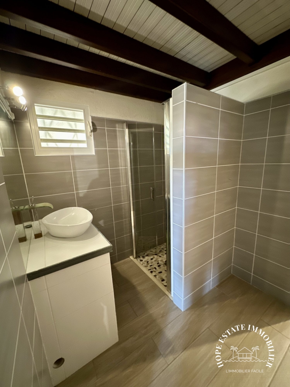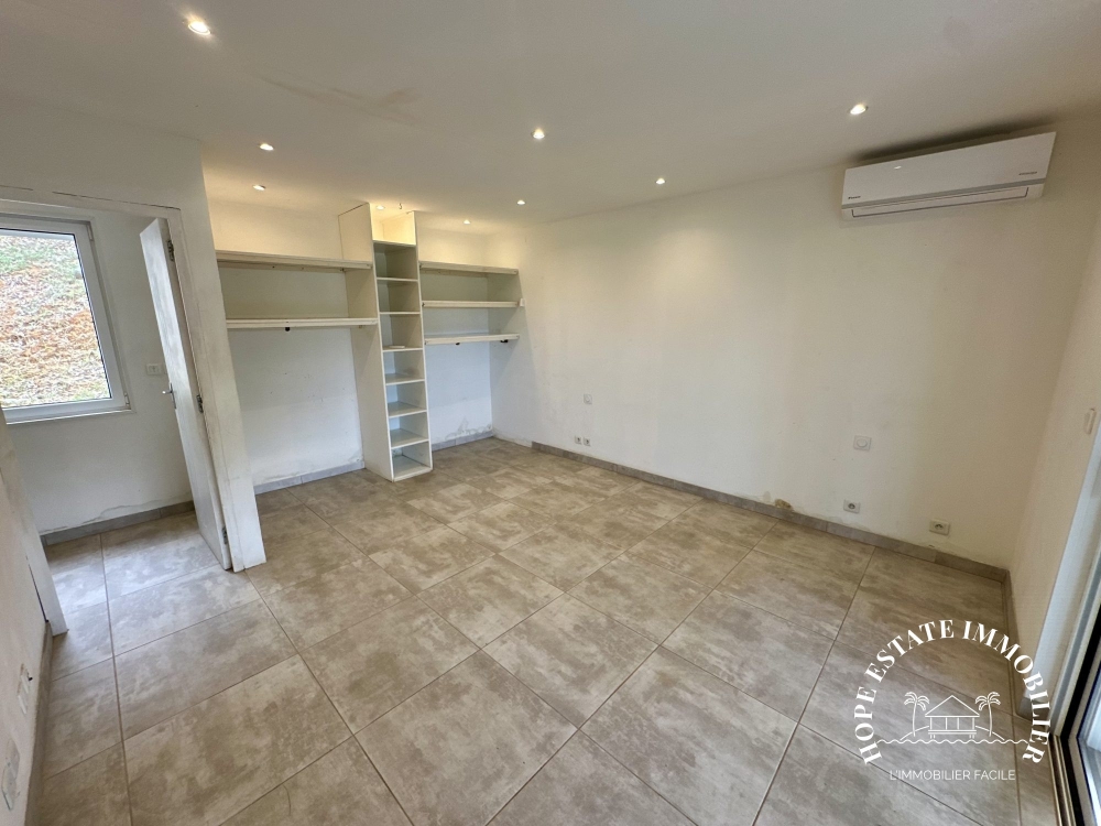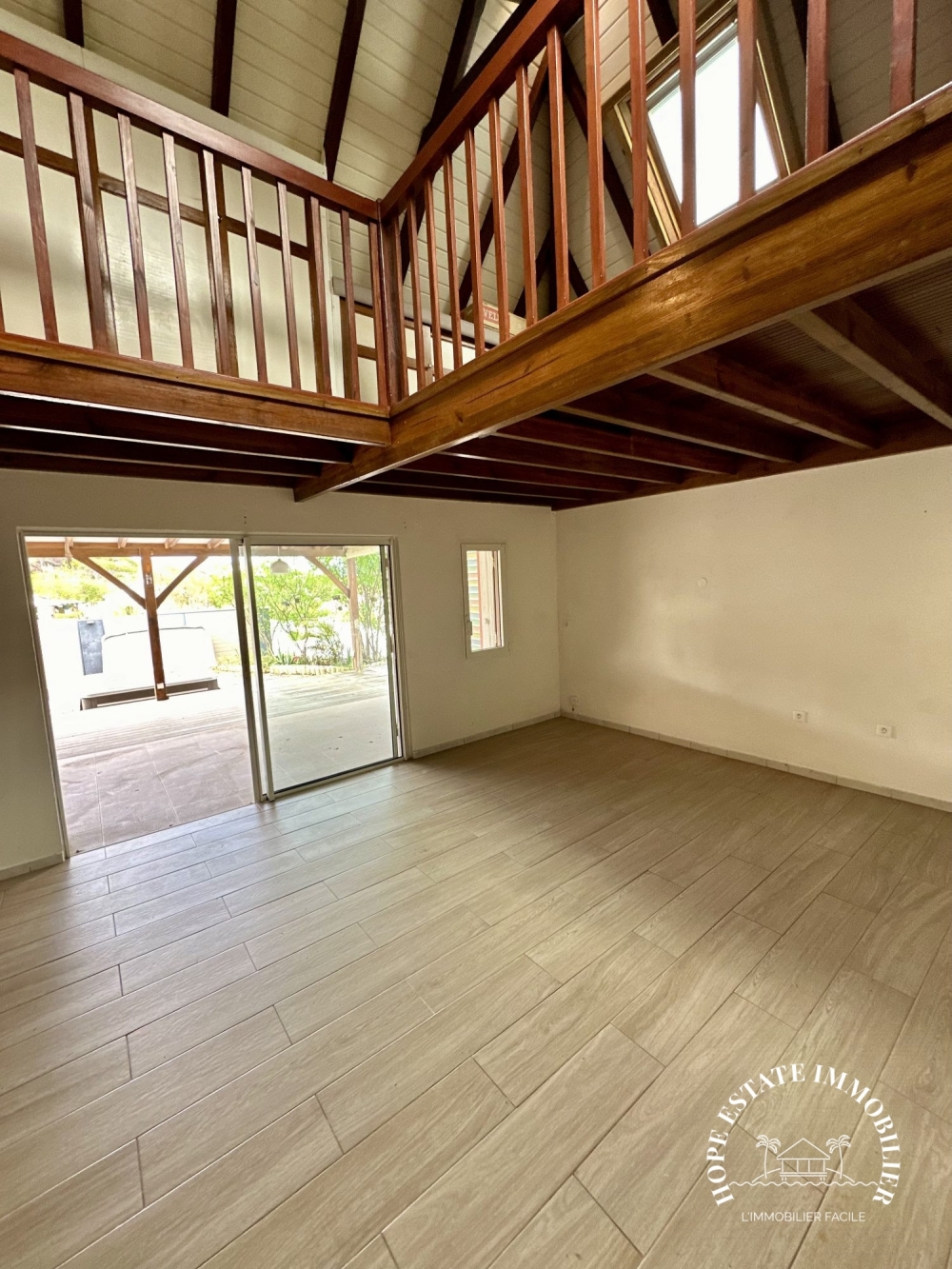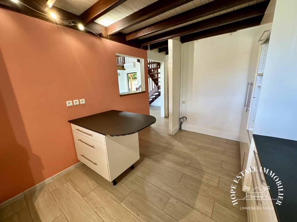 Elle se compose d'une spacieuse pièce de vie lumineuse avec une cuisine aménagée et entièrement équipée, d'une salle d'eau moderne et d'une élégante master room. À l'étage, une mezzanine pouvant servir de chambre d'appoint ainsi qu'une grande chambre avec placards complètent ce bien
