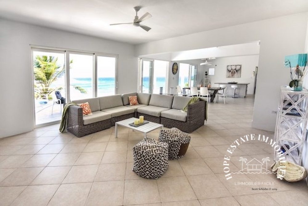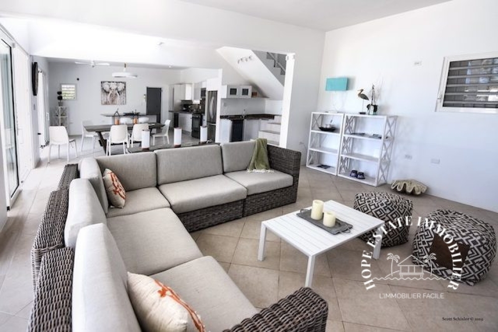 Conçue pour combiner confort moderne et charme tropical, la villa séduit par son architecture ouverte et fluide. Dès l'entrée, un élégant hall d'accueil vous invite à descendre quelques marches vers un espace de vie principal lumineux et convivial. Ce dernier se compose d'un vaste salon, d'une cuisine sur mesure ultramoderne, d'une salle à manger spacieuse, d'un bar élégant et d'une salle de bain complète. Chaque détail est pensé pour offrir une expérience unique, accentuée par l'accès direct au patio et à la piscine, où vous pourrez savourer la douce brise tropicale et une vue imprenable sur l'océan.