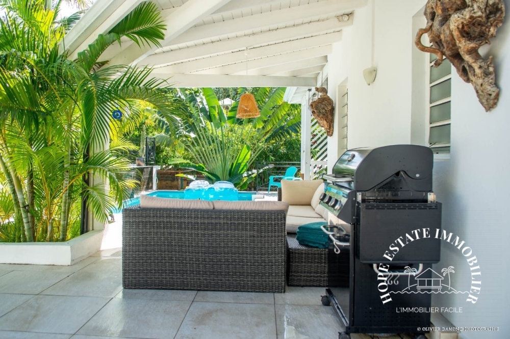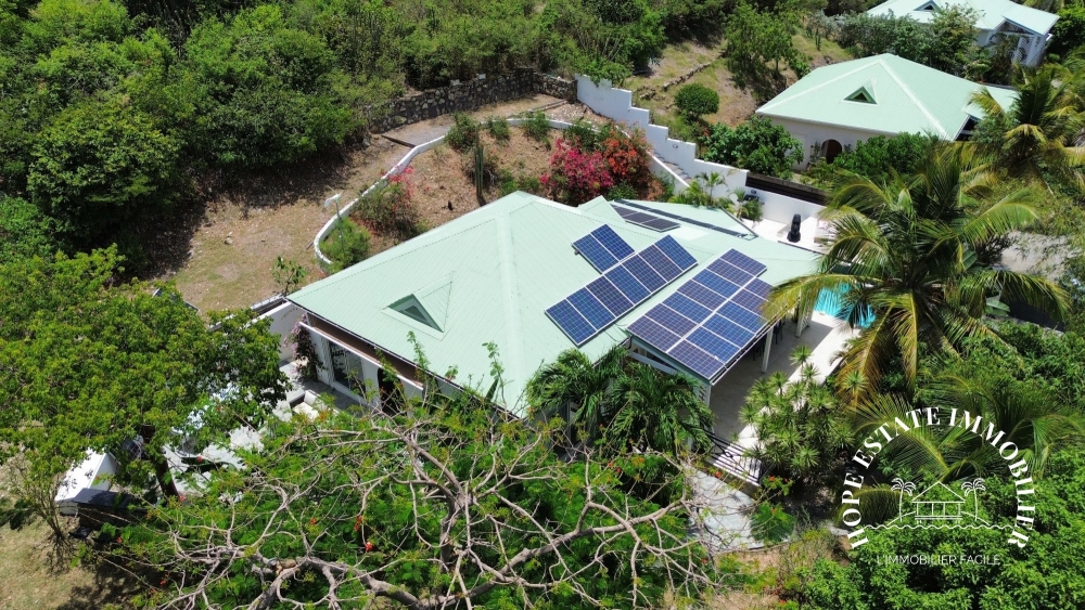 Côté pratique, la villa dispose d'un garage, d'un local piscine sécurisé par une porte en taule de 3 mm (faisant également office d'abri cyclonique), d'une citerne de 57 m³, et de deux places de parking à l'intérieur de la propriété.