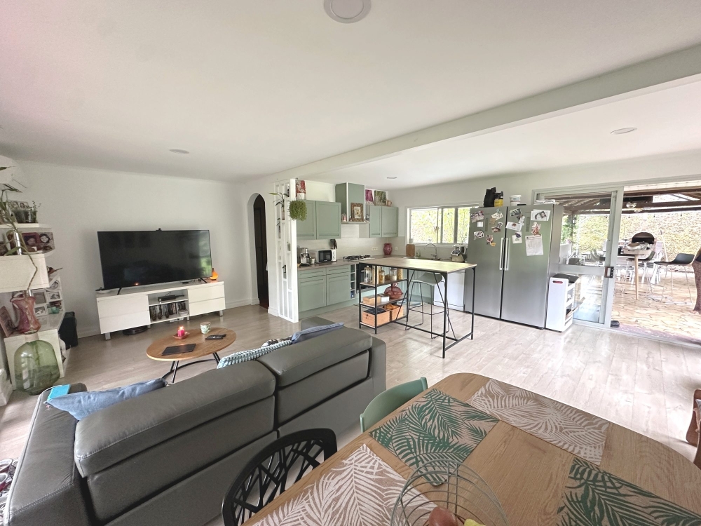 Ensemble immobilier composé de 3 biens: une maison principale F3 de 95 m², un studio indépendant attenant de 32 m² et un local professionnel de 59 m² actuellement occupé par une activité d'accueil périscolaire. Maison de construction néo-zélandaise de plain pied composée d'un séjour / cuisine de 36 m², d'une chambre parentale climatisée de 35 m² avec salle d'eau rénovée et placard, d'une chambre climatisée de 12 m² avec placard, d'une SDB rénovée, d'un WC séparé, d'une buanderie. Installation photovoltaïque. Chauffe eau solaire. Une piscine de 8 x 4m au sel. Un faré. Jardin. Studio indépendant climatisé composé d'une cuisine, une salle d'eau, un WC séparé, de nombreux rangements et une terrasse privative de 11 m².Local professionnel récent composé de 2 modules: une partie repas de 15 m² et des sanitaires et une partie avec 2 salles de 16 m² et un bureau de 4 m².L'activité d'accueil périscolaire est vendue en complément de l'immobilier. Grand parking clôturé. Le tout sur terrain de 23 ares.