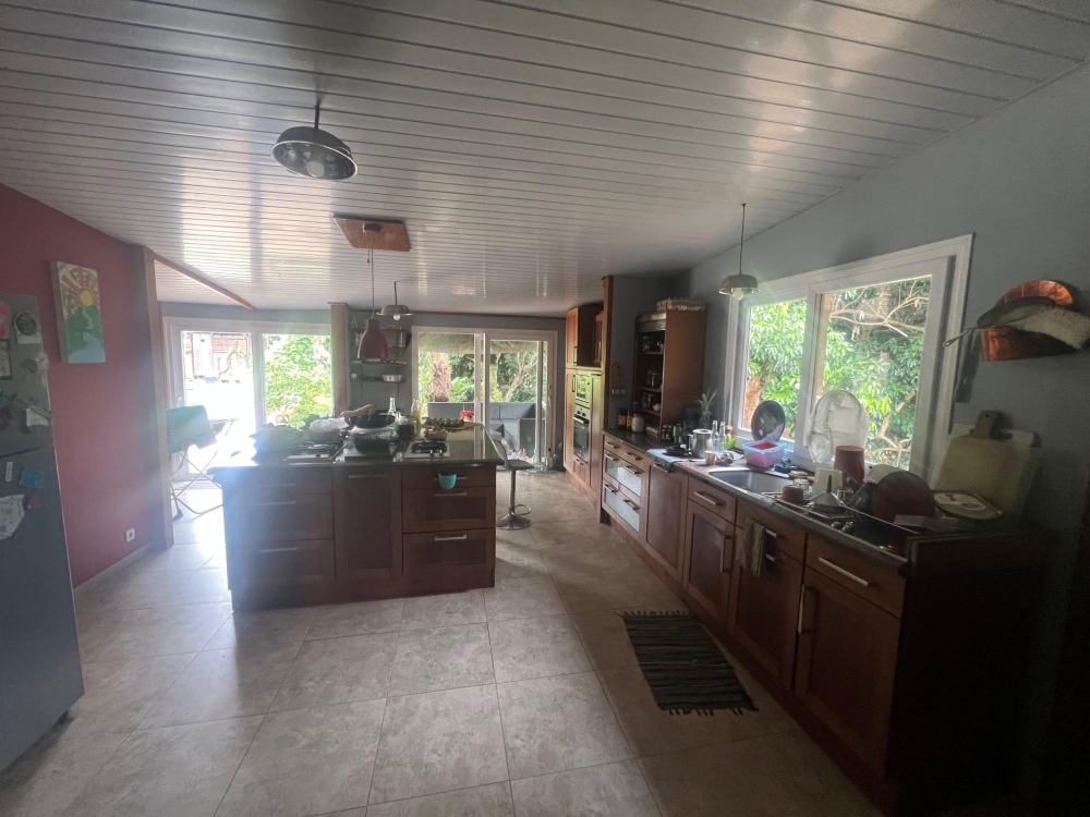 La maison s'ouvre sur une pièce de vie conviviale qui donne accès à une cuisine fonctionnelle et bien agencée, équipée d'un îlot central et de meubles de rangement hauts et bas. L'espace nuit comprend quatre chambres offrant la possibilité d'être aménagées selon vos besoins.
