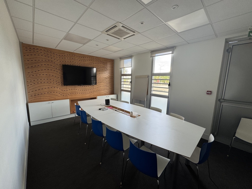 Avec une surface totale d'environ 81 m², ce local offre aujourd'hui une configuration fonctionnelle comprenant une salle de réunion, un bureau indépendant, un espace de circulation pouvant être utilisé comme coin photocopie ou rangement, une cafétéria conviviale ainsi que des sanitaires, dont un accessible aux personnes à mobilité réduite et un local technique. Cette organisation permet de répondre aux besoins de nombreux types d'activités, qu'il s'agisse de professions libérales, de services, de bureaux administratifs ou encore d'un espace partagé.