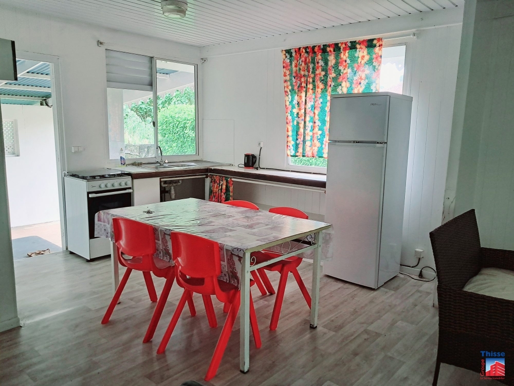 Sur FAAONE PK51 côté montagne dans un quartier familial et calme , loue une ancienne maison en bois de type F3 sur un terrain de 500m2 arboré qui comprend :
