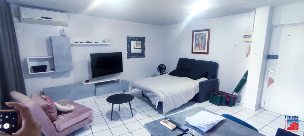 Appartement type F1 de 39,8m2 comprenant un grand salon de 36m2 avec lit double avec salle d'eau + WC et une cuisine aménagée et équipée.