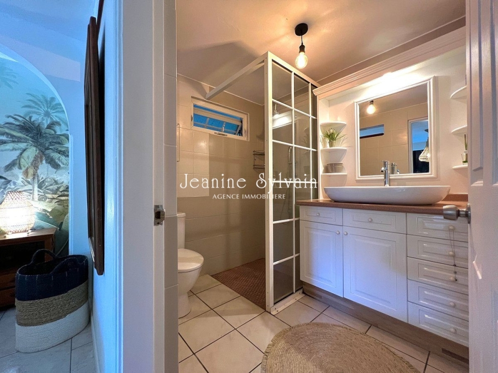 À l'étage, avec vue sur la mer, trois logements indépendants : deux suites comprenant chacune deux chambres, une salle d'eau et une terrasse couverte, plus une troisième chambre avec sa salle d'eau.