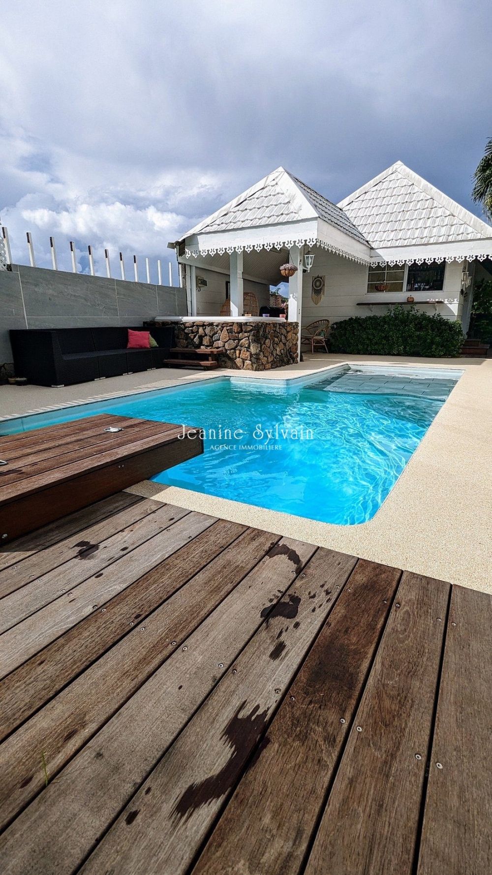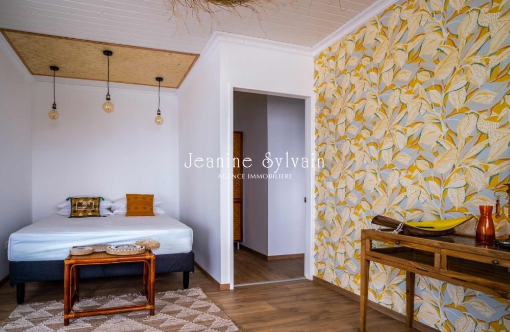 Le terrain de 560 m², arboré et sans vis-à-vis, inclut une piscine, un jacuzzi et un fare potee de 25 m² avec cuisine, bar, salle à manger et vue sur la vallée et l'océan offre un cadre idéal comme maison d'hôtes.