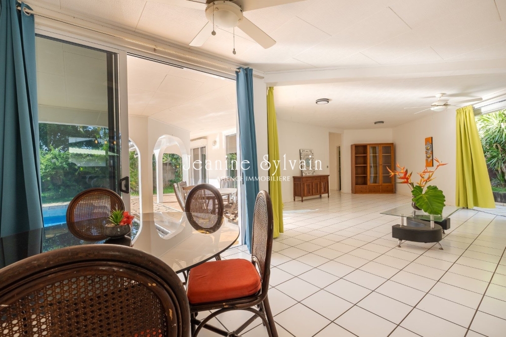 La maison principale, spacieuse de 180m2 et de plain-pied, se compose de quatre chambres climatisées, d'un bureau, ainsi que d'un salon avec cuisine américaine ouvrant sur une belle terrasse couverte face à la piscine. Une buanderie complète cet ensemble.