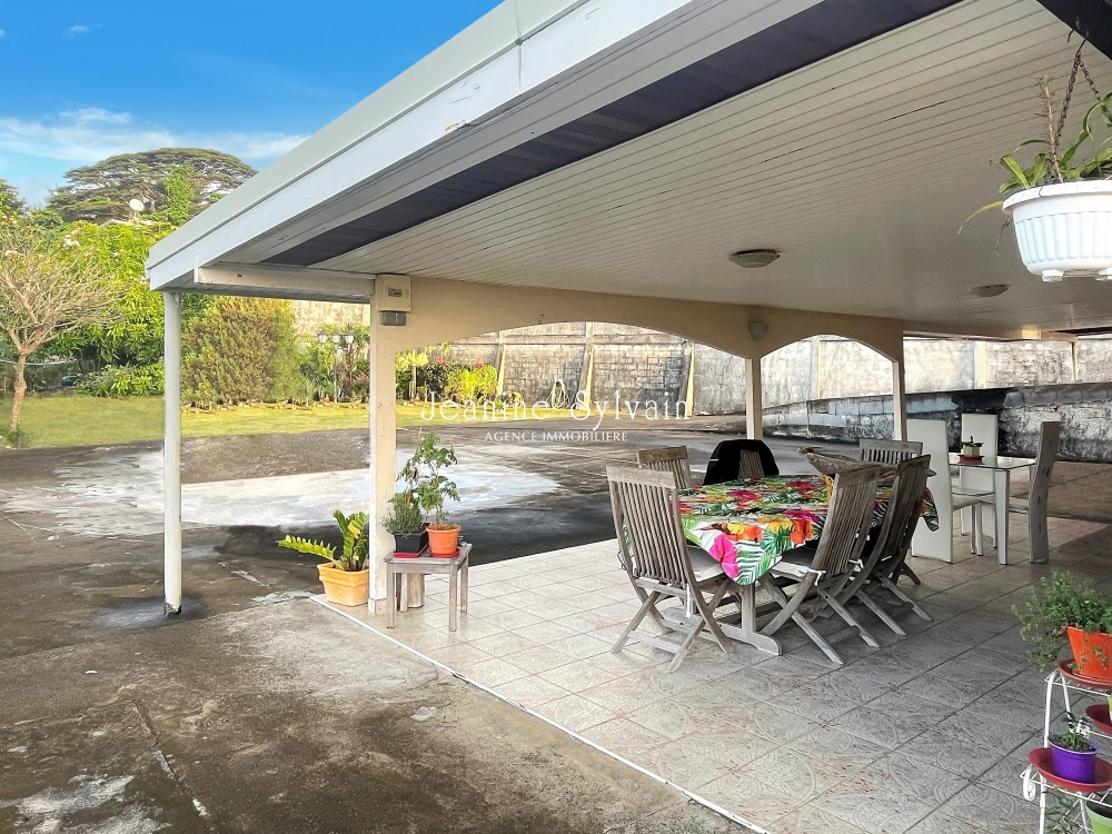 Une cuisine ouverte sur une grande terrasse couverte