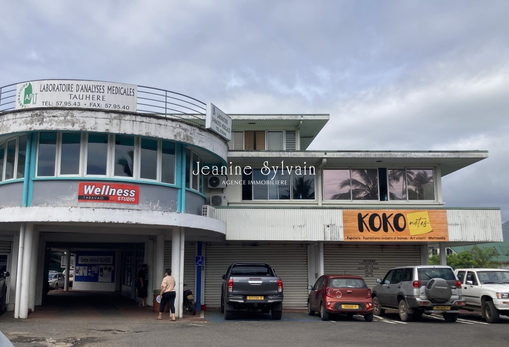 Dans le centre commercial et médical TAUHERE à TARAVAO, à côté du laboratoire, un local commercial climatisé de 75 m², idéal pour une profession libérale dans le médical. Actuellement divisé en un espace d'accueil avec salle d'attente et un bureau mais possibilité de diviser l'espace pour maximiser l'utilisation avec 2 entrée possible.