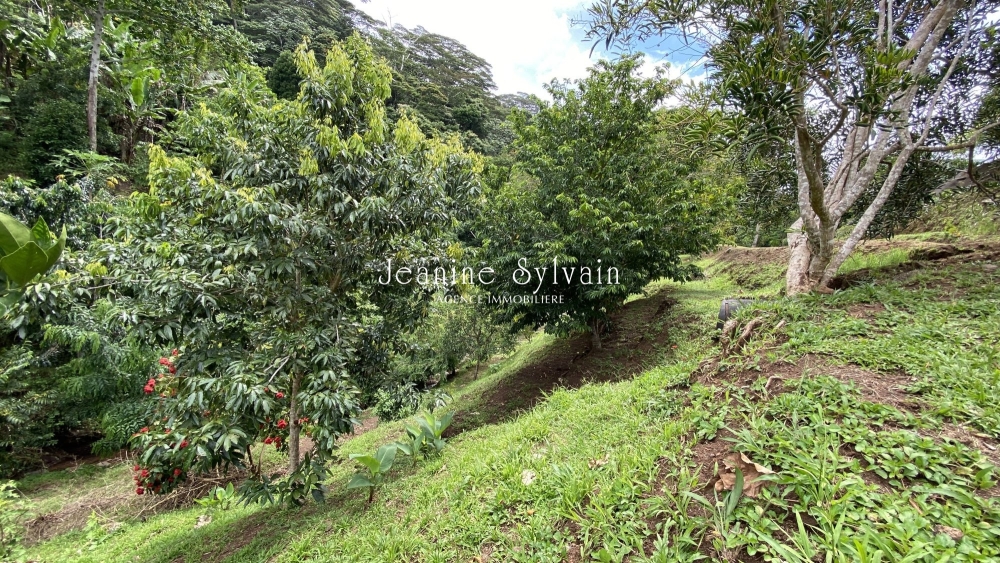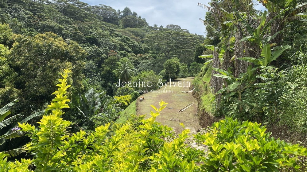 Sur les hauteurs du Taharaa, un magnifique terrain de 3500m2 dont 1000m2 plat, très bien arboré avec de nombreux arbres fruitiers rares, dans une vallée luxuriante avec un ruisseau en contre-bas. Possibilité de diviser en deux lots.
