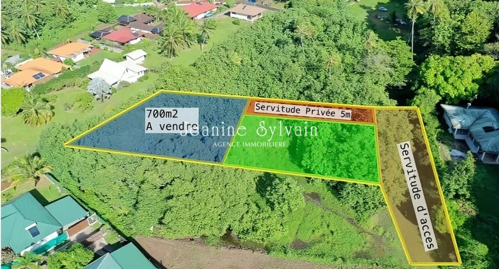 Terrain plat de 700m2 très bien placé à 5 min du quai de Vaiare, servitude d'accès peu profonde.
