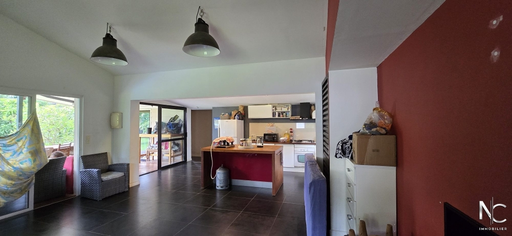 En franchissant le seuil, vous êtes immédiatement accueilli par un vaste séjour / cuisine de 48 m², baigné de lumière.