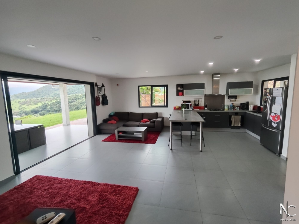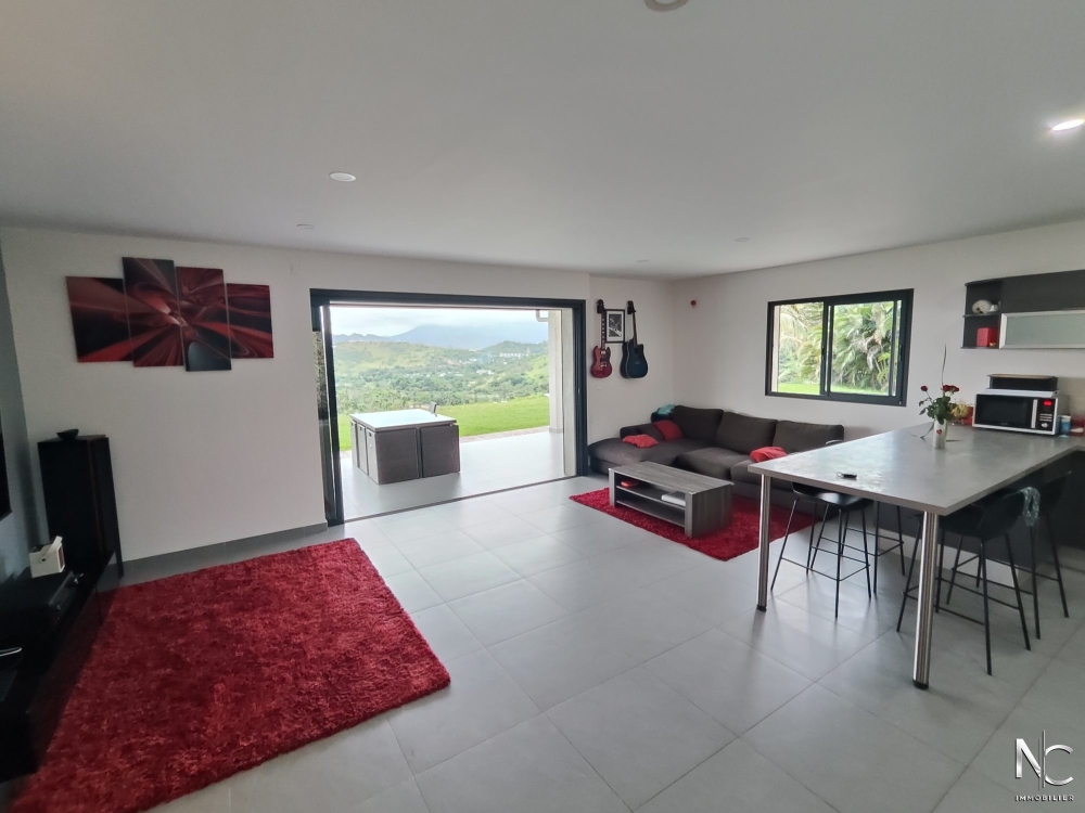Elle se compose d'un séjour et d'une cuisine équipée avec ilot repas d'une surface totale de 40 m², d'une suite parentale de 23 m² comprenant un dressing et une salle de bain avec wc, de deux chambres avec placard, d'une seconde salle d'eau + wc et d'une buanderie. La terrasse couverte de 30 m² se présente en prolongement du séjour et de la suite parentale et permet de profiter de la vue mer et montagne.