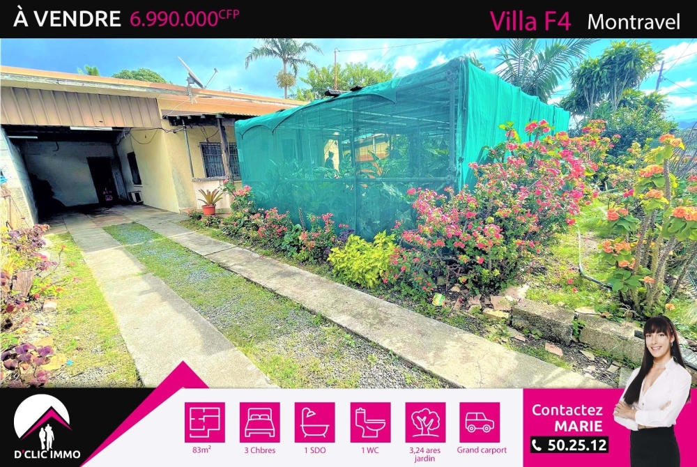 Situé dans le quartier de Montravel, l'agence D'CLIC IMMO vous propose en exclusivité une spacieuse villa de type F4 d'environ 83.46m² habitable, en construction traditionnelle, toiture en tôles, charpente en bois, avec terrasse et garage sur un terrain plat de 3a24ca, datant environ des années 1950/1960.