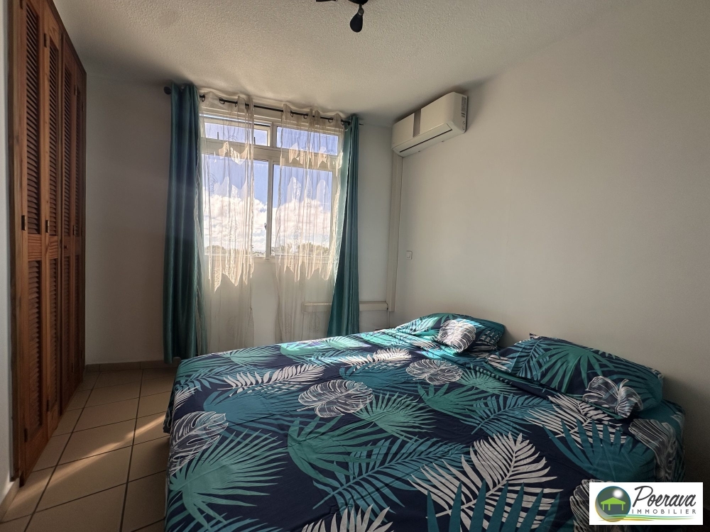 À louer à partir d'août 2025 : appartement de type F2 d'une surface intérieure de 52 m², complété par une terrasse couverte d'environ 12 m², offrant une vue panoramique sur Moorea.