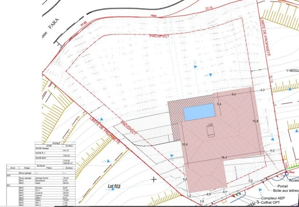 - Surface plane possible de 500m² après enrochement/mur de soutènement