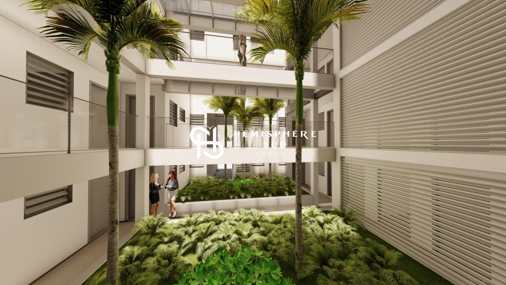Cette résidence en cours d'édification se compose de 54 appartements, du F1 au F5, qui disposent d'une terrasse et d'un emplacement de stationnement (au minimum, en fonction des logements). Un espace collectif (avec une piscine et ses abords très agréable) est prévu en toiture.