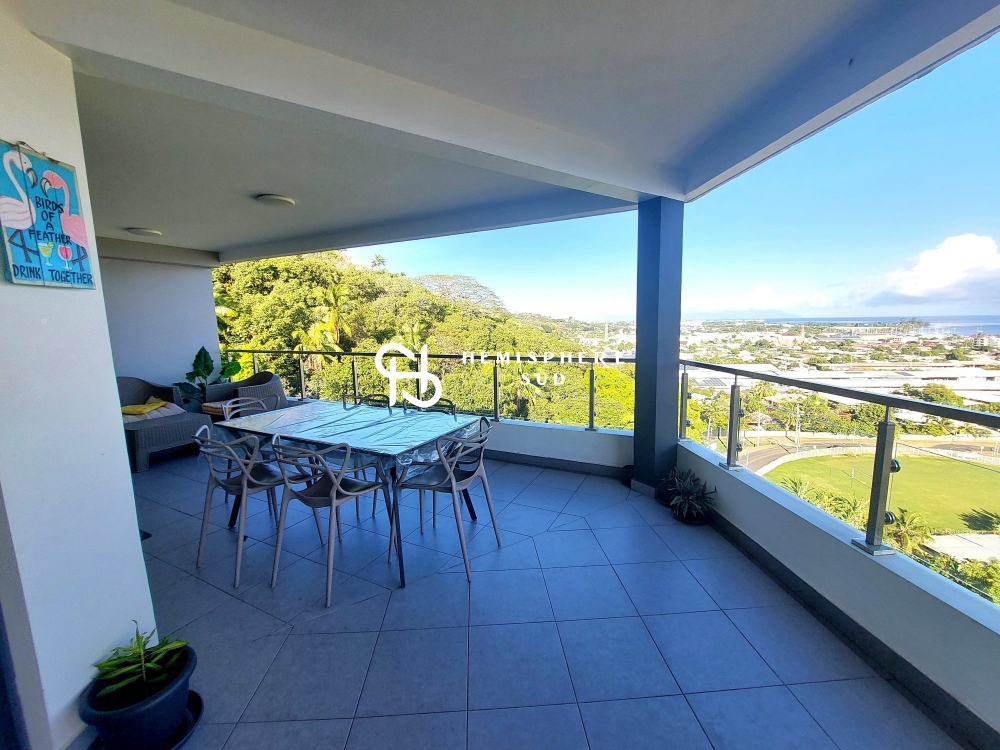 Une vue imprenable de Moorea jusqu'à la Pointe Vénus, dans une résidence de standing récente, sécurisée avec piscine, à quelques minutes des commerces et grands axes.