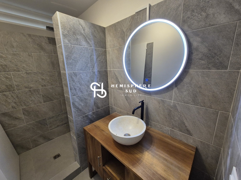 - A l'étage : de trois chambres, d'une chambre parentale atypique mais très cosy, climatisée, avec salle d'eau et patio attenant.