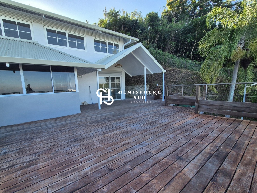 - Au RDC : d'un salon prolongé par un grand deck et sa terrasse couverte, offrant une vue imprenable sur le lagon et Moorea, d'une cuisine avec buanderie attenante, d'une salle d'eau et d'un WC séparé,