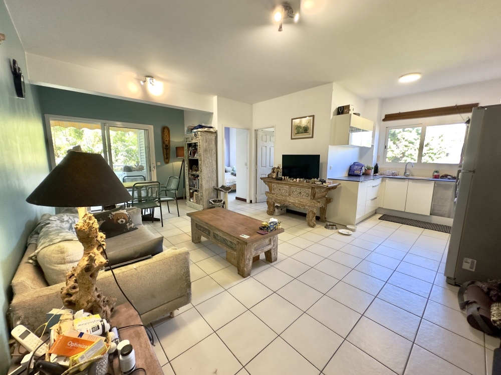 ? Situé au 1? étage sur 2, l'appartement offre :? Un séjour lumineux avec belle hauteur sous plafond? Une cuisine rénovée, aménagée et équipée (plaques, four, hotte) avec rangements, emplacement lave-vaisselle & plan de travail fonctionnel?? Une chambre avec placards, climatisation ?? et volets roulants? Une salle d'eau avec WC et aération naturelle? Une terrasse sans vis-à-vis donnant sur la végétation ?, avec un espace buanderie extérieur