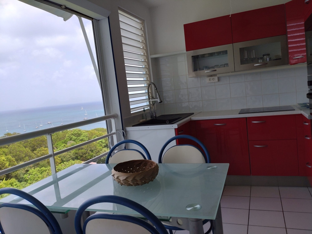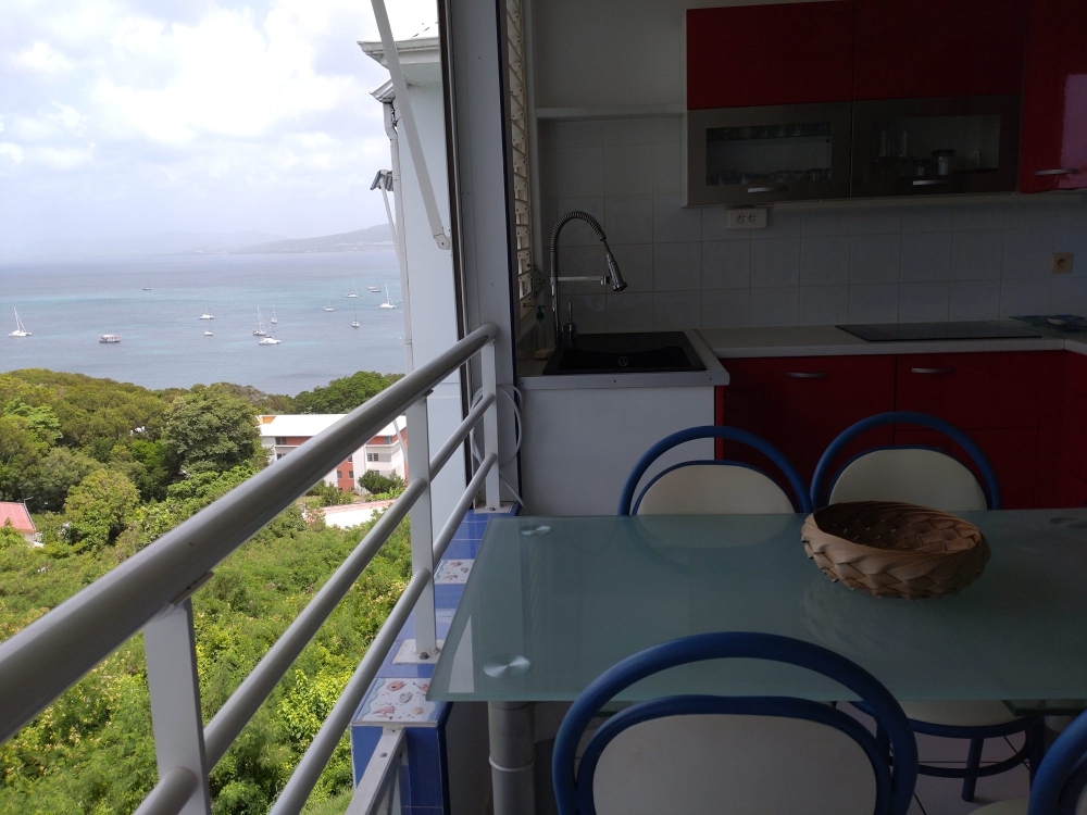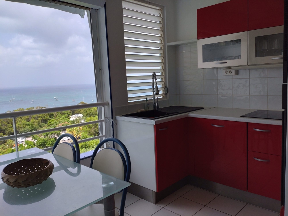 À vendre à Sainte-Anne (97227) : appartement de 32 m² au 4e étage d'un immeuble. Le T2 se compose comme suit : une pièce à vivre, une chambre, une cuisine aménagée équipée et une salle d'eau. En annexe, on trouve une place de parking et une terrasse (10 m²). Vue sur la mer. Coup de coeur.
