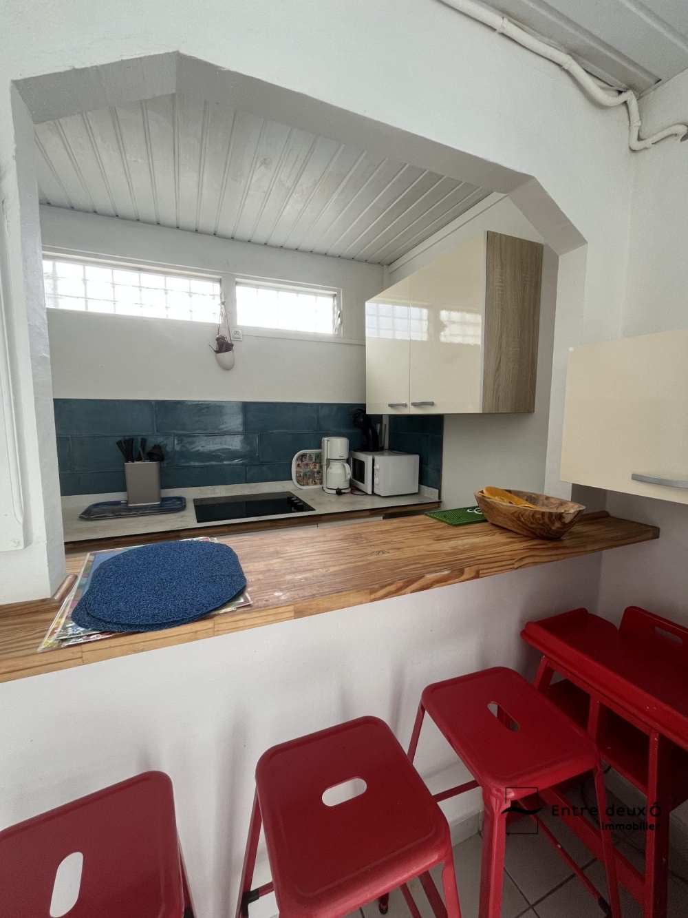 Le bien dispose d'une cuisine équipée proposant un bar avec tabourets