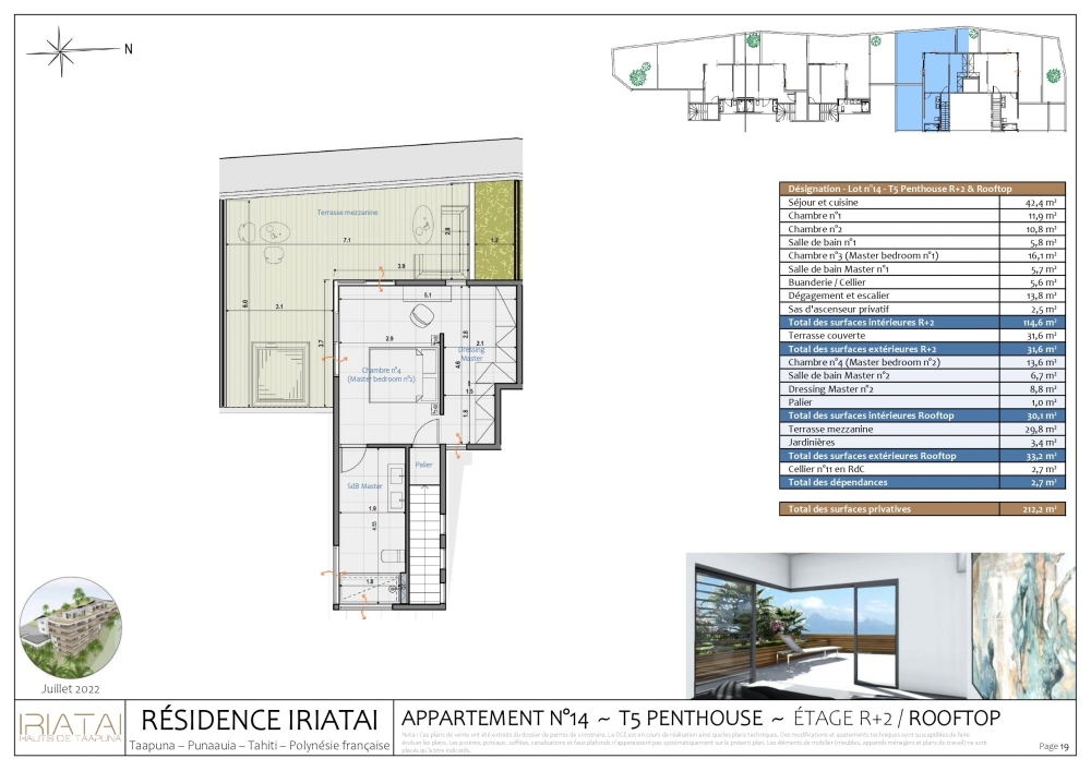 Imaginez-vous dans un cadre de vie exceptionnel, où chaque détail a été pensé pour votre confort et votre bien-être. Ce Penthouse T5 situé au dernier étage, vous offre une surface habitable de 145 m² et une surface totale de 210 m² avec 2 grandes terrasses vous garantissant un espace de vie spacieux et lumineux.