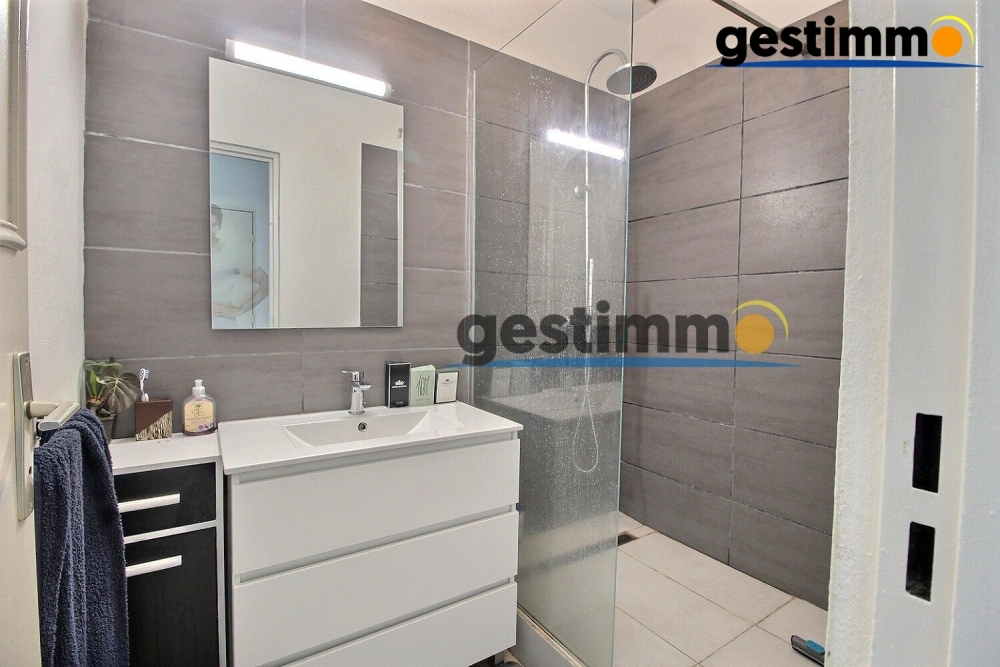 L'espace nuit se compose d'une chambre climatisée avec placard intégré et bureau, parfaite pour travailler en toute tranquillité. La salle d'eau, récemment rénovée, dispose d'une douche à l'italienne.