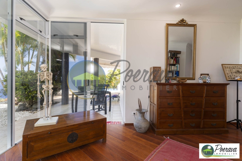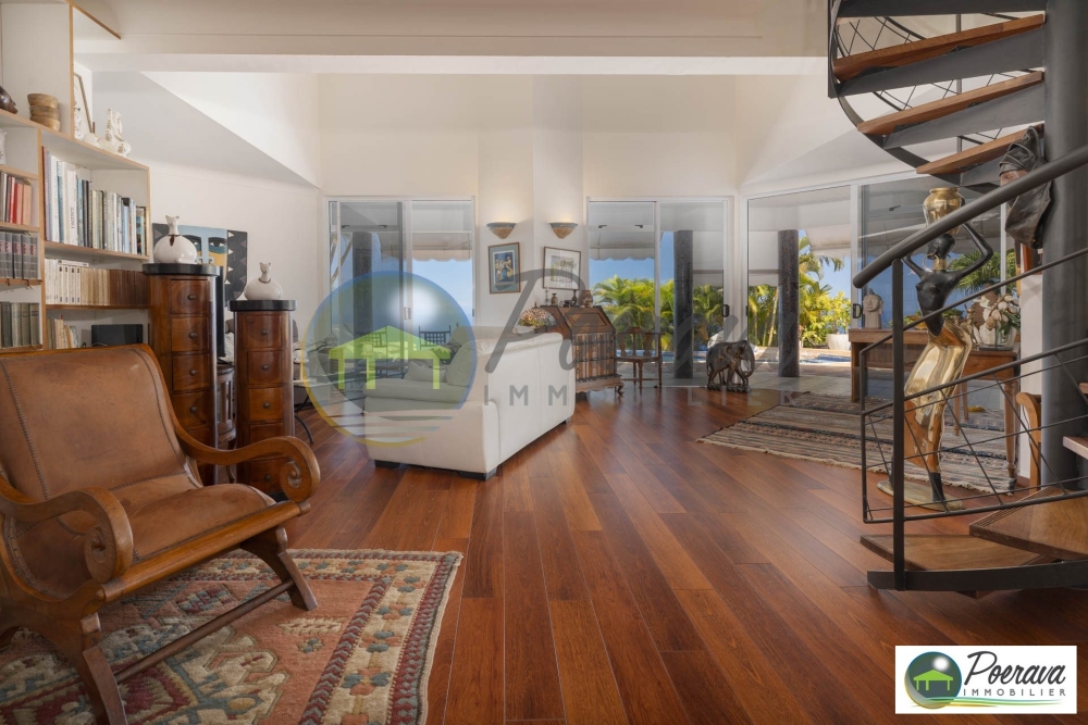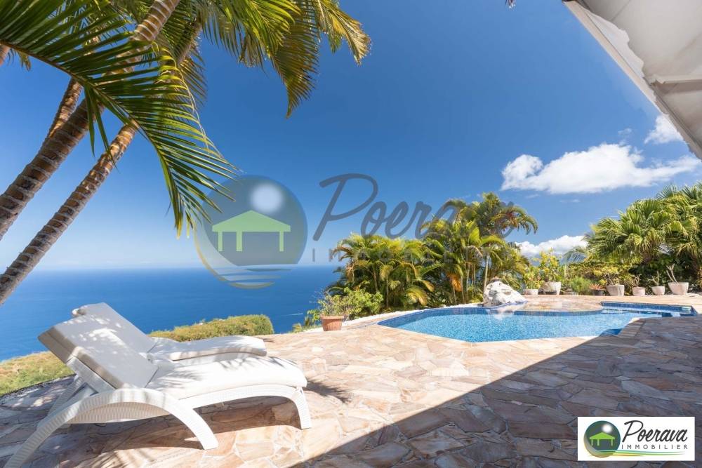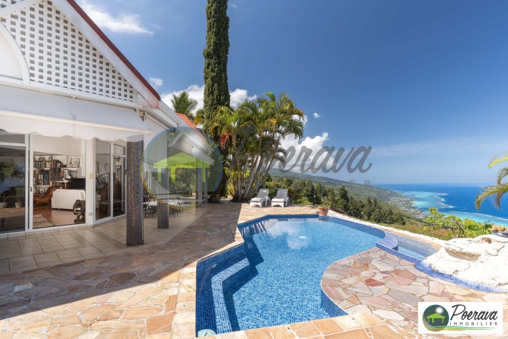 Sur les hauteurs de Punaauia, nichée sur une butte et idéalement positionnée sur un promontoire, cette magnifique propriété offre une vue imprenable sur Moorea et son lagon.